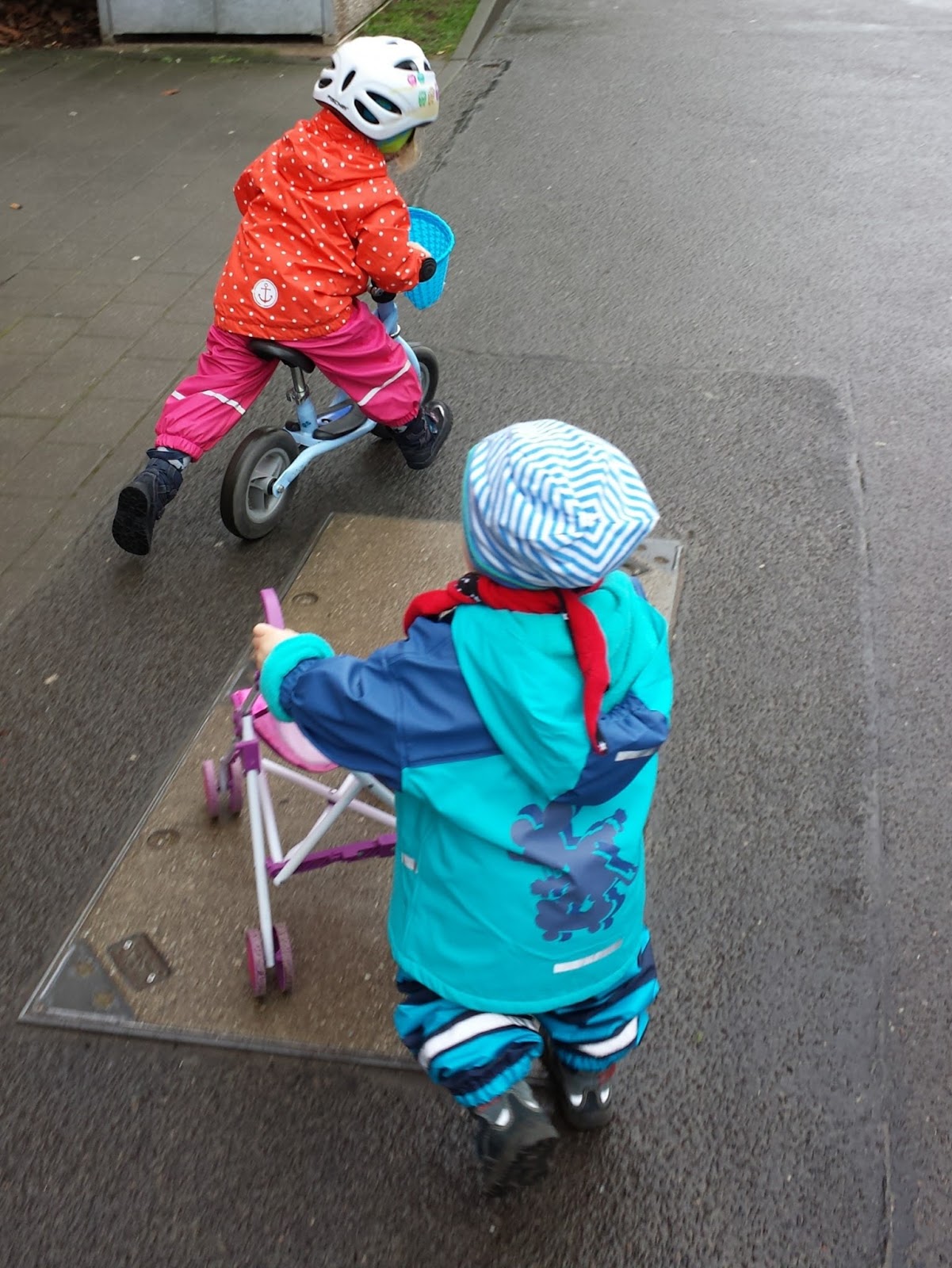 Seine Spielvorlieben entwickeln sich. Er fängt grade erst an. Doch sein Herangehensweise unterscheidet sich von seiner Schwester. Krümelie setzte ihre Puppe in den Puppenwagen und spazierte. Krümel setzt sich hin und unterstucht die Räder. Er läuft auch freudig mit seinem Kuschelfreund im Wagen umher. Doch sein Hauptaugenmerk richtet er auf das Vor und Zurück (der Räder).