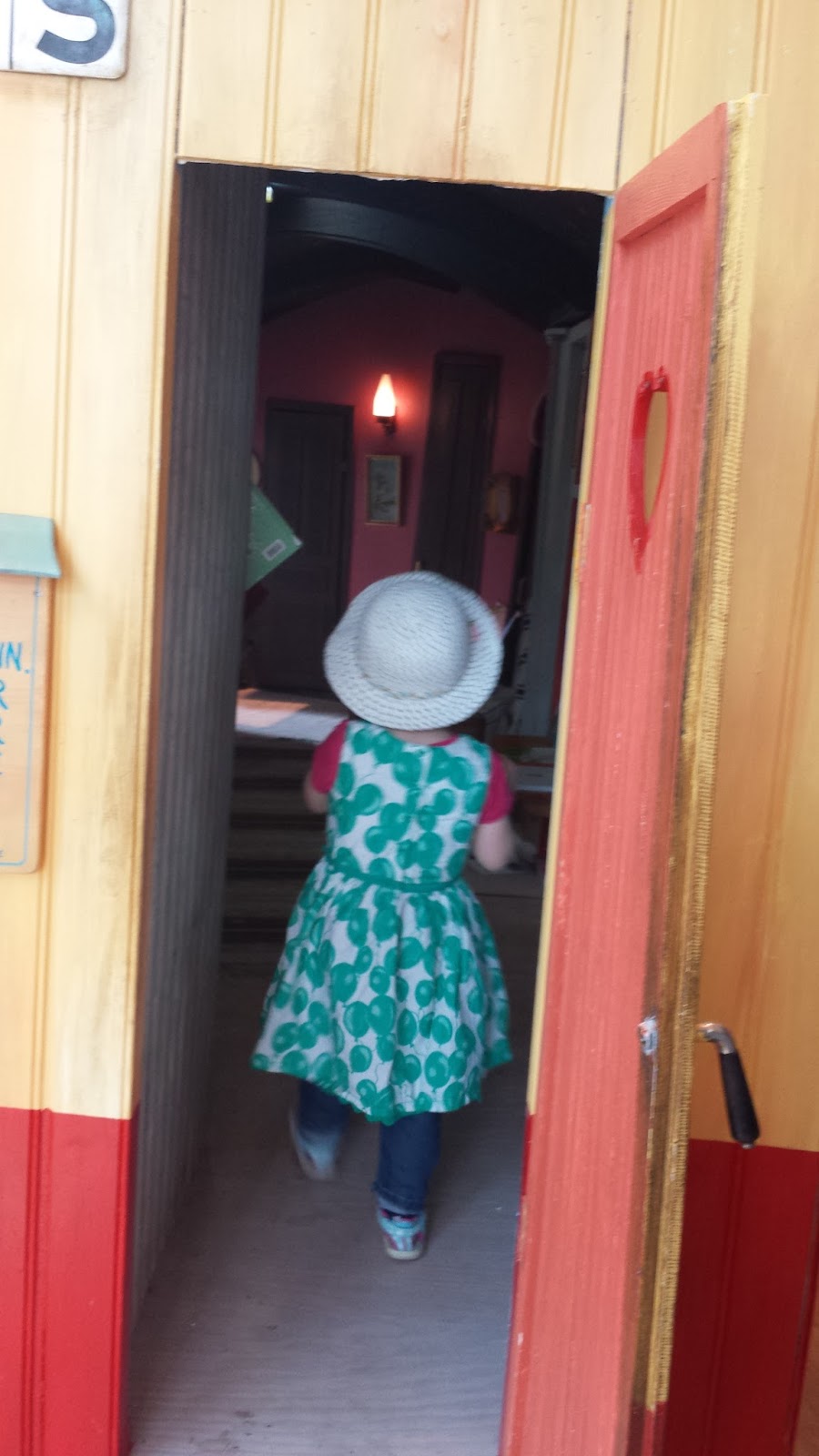 Krümelie konnte wirklich alles ohne Konkurrenz anschauen und ausprobieren. Der Wagen und die Häuser sind in Kindergröße, was mir sehr gefiel. Da habe ich mich allerdings nicht reingezwängt. Hätten wir zwar beide gut gefunden, aber nunja… ich wollte nix zerstören.