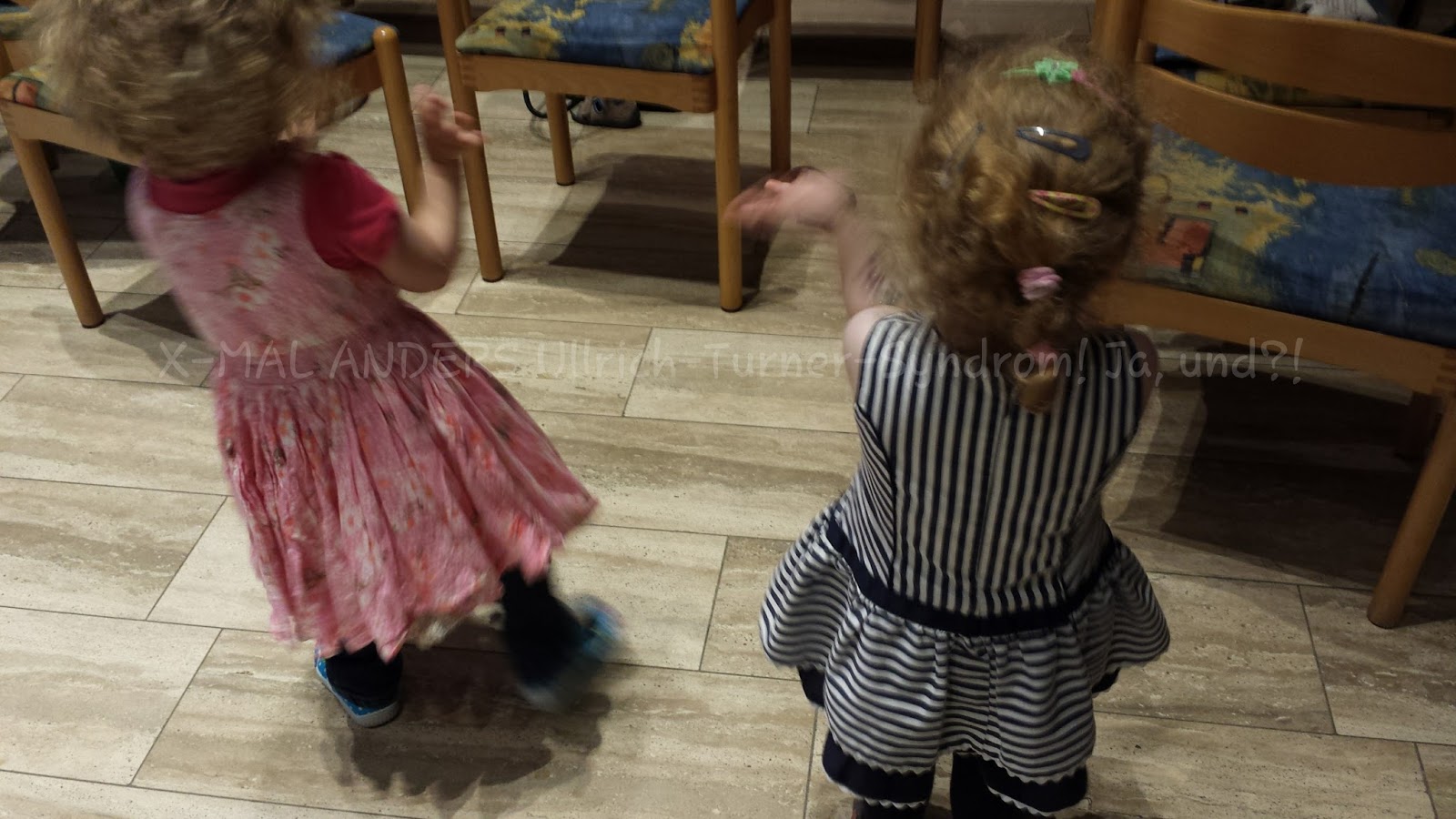 Der Nachmittag plätscherte dahin. Ich hatte keine recht Lust und verfolgte lieber das Spiel der Kinder. Wir aßen Abendbrot und trennten uns dann wieder. Krümelie und ich gingen zum bunten Abend. Krümelie stellte sich auf den Stuhl und verfolgte gebannt das amüsante und unterhaltsame Programm. Als danach Musik gespielt wurde, waren sie und ihre zwei neuen Freundinnen nicht mehr zu halten. Sie drehten sich und waren sichtlich ausgelassen. Spät ging es ins Bett.
