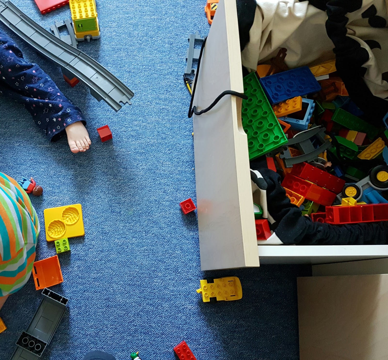 Die Kinder spielten und malten anschließend und ich packte ein Geburtstagsgeschenk ein. Wir snackten und Krümel schlief noch eine Runde.