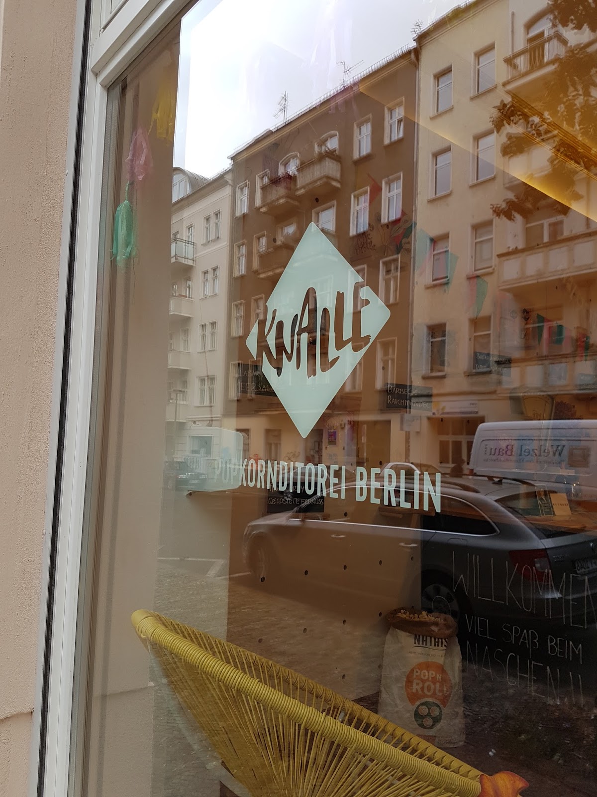 Wir suchten KNALLE auf. Selbstgemachtes super Popcorn aus Berlin sollte es geben. Wir kauften in einem wahnsinnig schönen Laden für den Film der Filme.