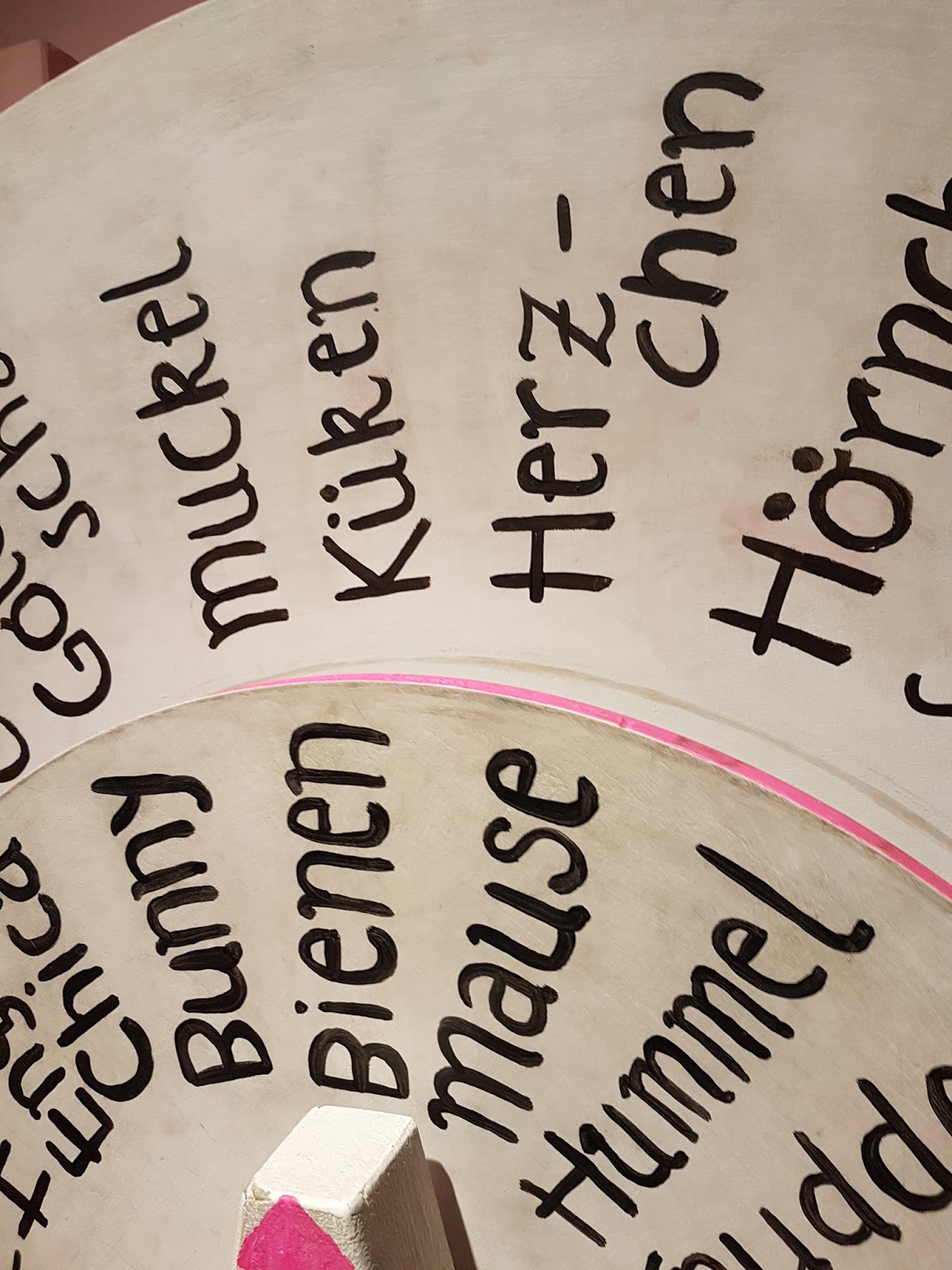 | Spitznamenglücksrad. Hier wohnen Bienenmuckel und Hummelherzchen. |
