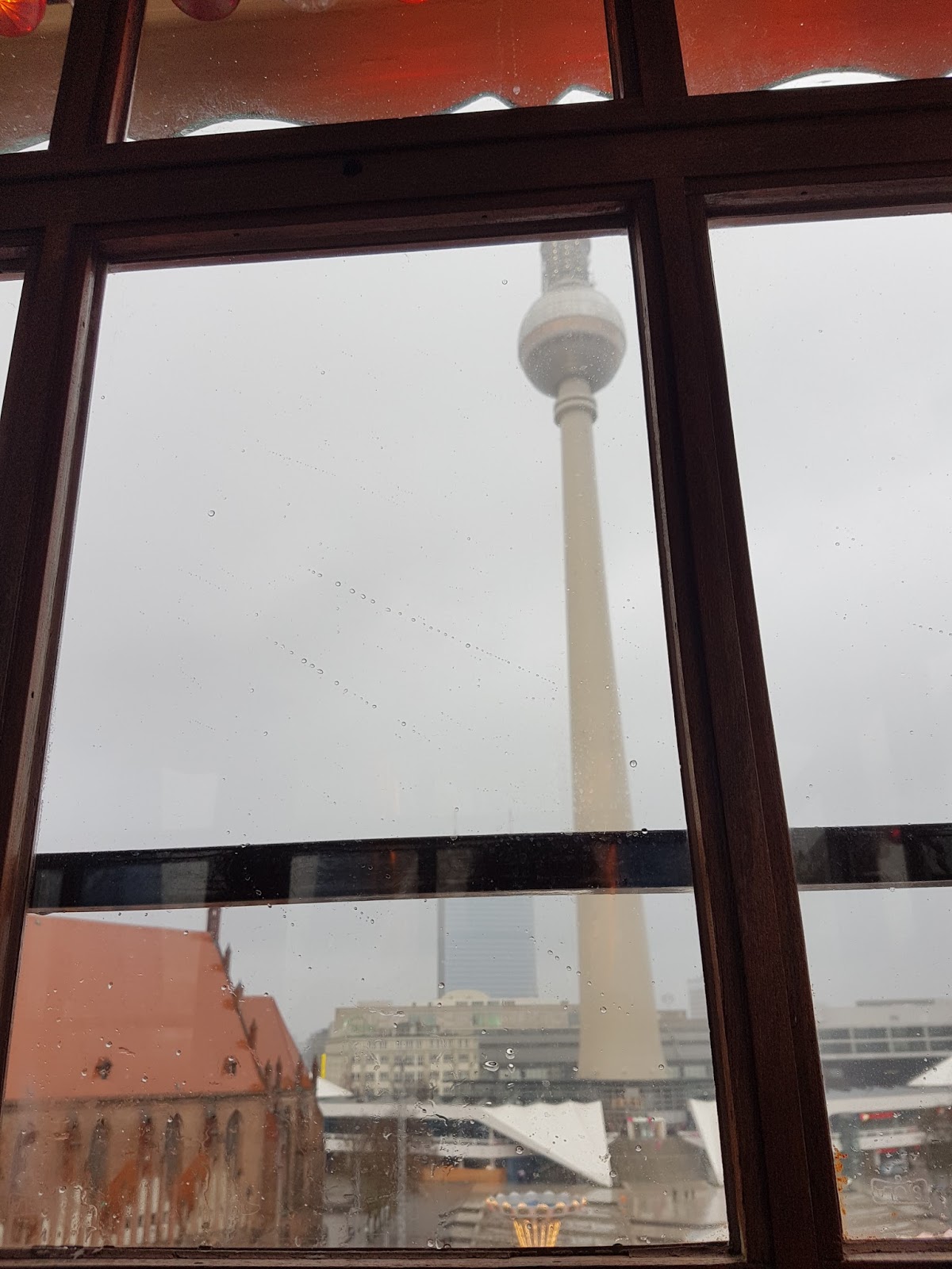 Da wir schon draußen waren, entschieden wir spontan am Alex mit dem Riesenrad zu fahren. Das war wirklich faszinierend. Leider regnete es fürchterlich und wir machten eine Kaffeepause. Sehr touristisch.