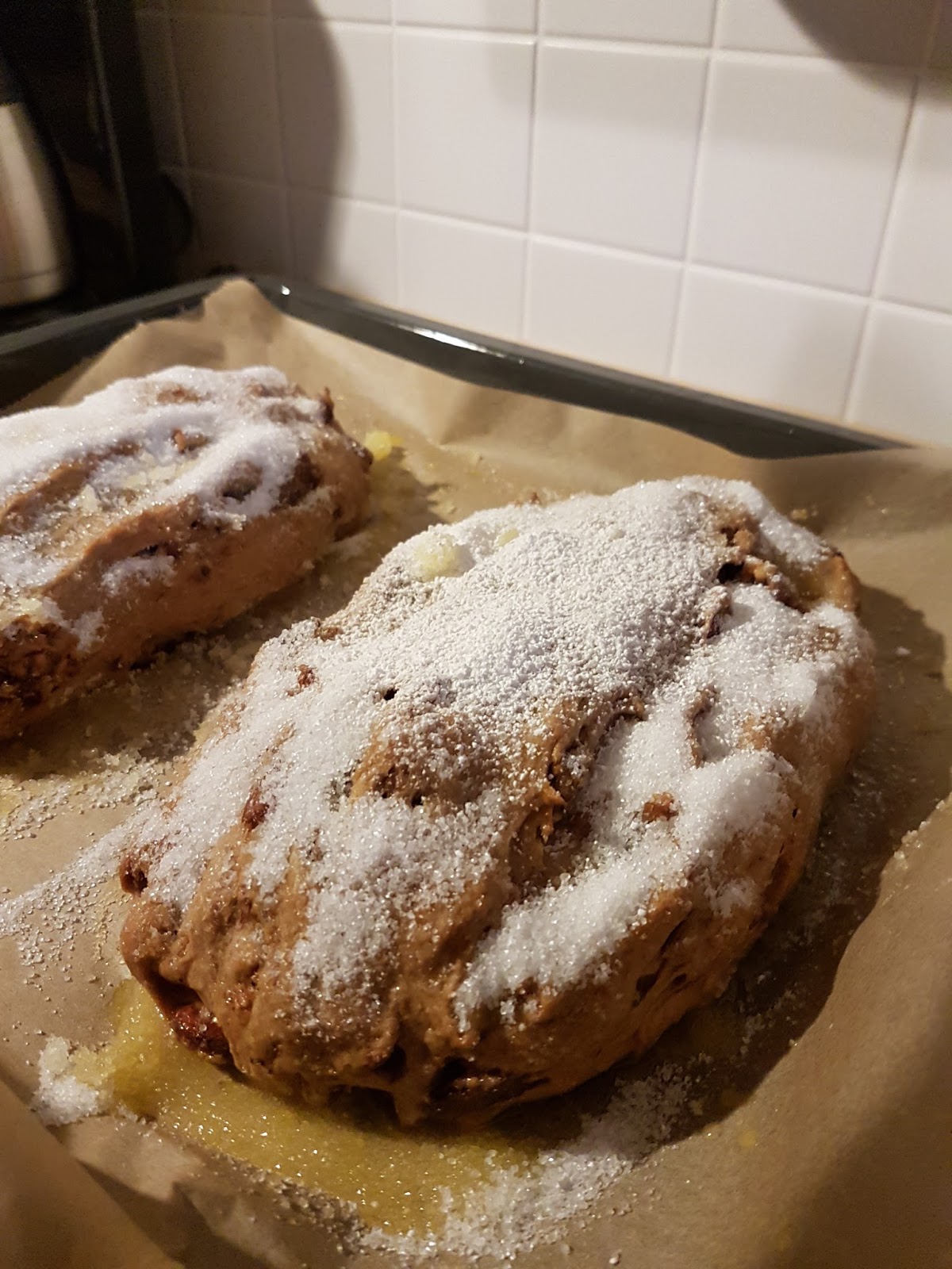 Der Herzmann vollendete seine veganen Stollen und war darüber sehr froh. Krümel, er und Oma&Opa machten sich mit dem Backwerk auf zu einer Uroma. Die kränkelnde Krümelie und ich machten uns einen ruhigen Nachmittag.