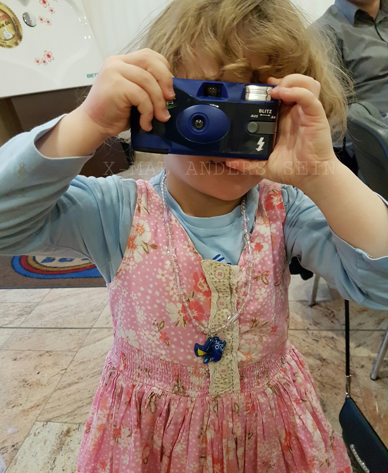 Irgendwann ging sie dazu über zu tanzen. Stolz durfte sie auch einmal ins Mikro singen. Zwischen durch, interessanterweise, immer wenn ich mich unterhielt, kam sie und forderte mich und andere Umstehende auf ihr zu zusehen. Zum Klatschen mussten wir dann nicht mehr aufgefordert werden. Der Abend verging, Krümelie tanzte, unterhielt sich mit den Freunden des Geburtstagskindes. Sie betätigte sich als Fotografin und knipste bestimmt- dank der kindlichen Perspektive – interessante Motive.