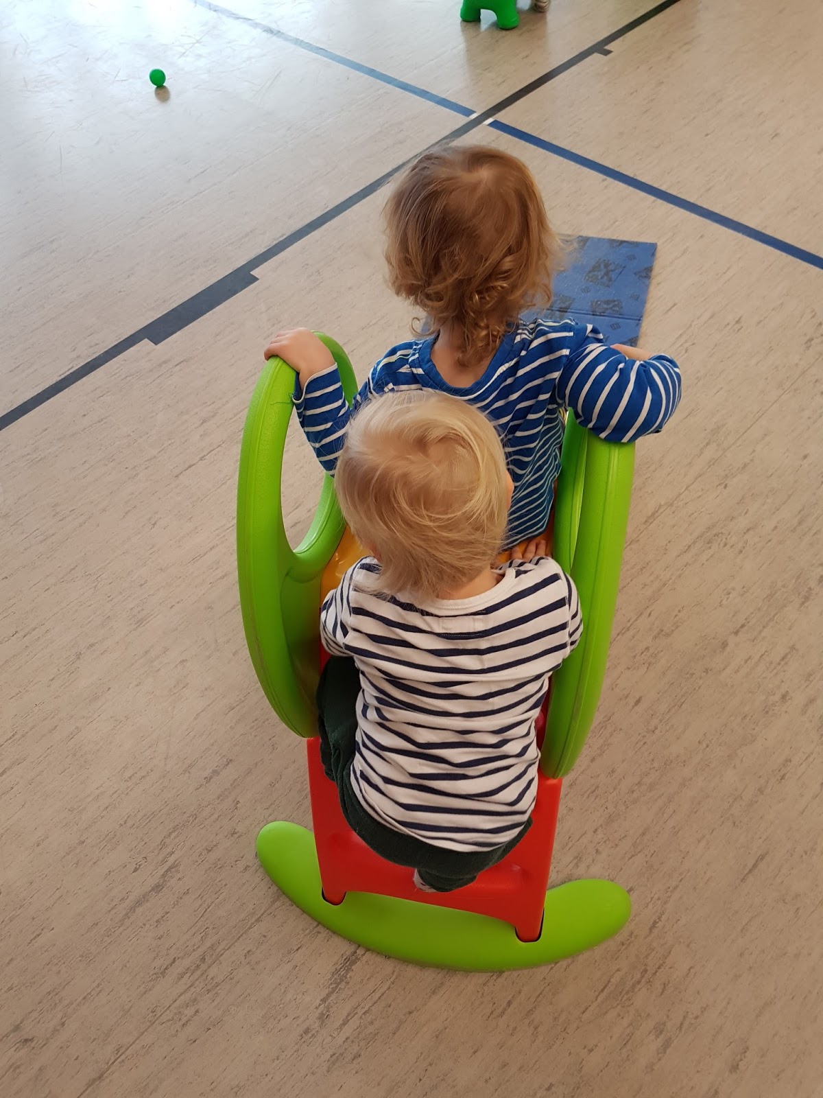 Krümel und ich machten uns anschließend auf den Weg. Wir bestaunten die Baustelle und freuten uns in der Turnhalle über unsere Verabredung. Krümel und sein Freund tobten sich aus. Wir Mama’s unterhielten uns gut.