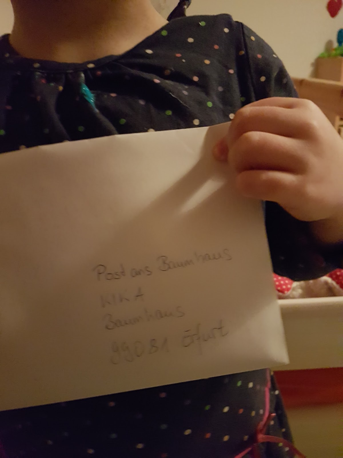Der Sonntag endete für die Kinder mit dem Sandmann. Im doppelten Sinne. Wir schaffen es endlich das Bild von Krümelie in den Umschlag zu stecken.