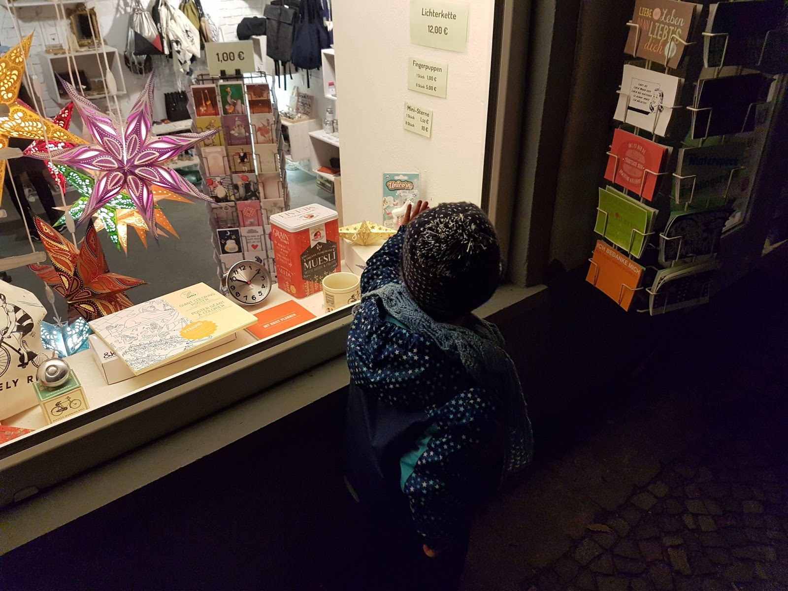 Von dort bummelten wir durch „die Stadt“, bestaunten Schaufenster, kauften Bohnen und begrüßten die Dunkelheit. Zuhause passierte nicht mehr viel.