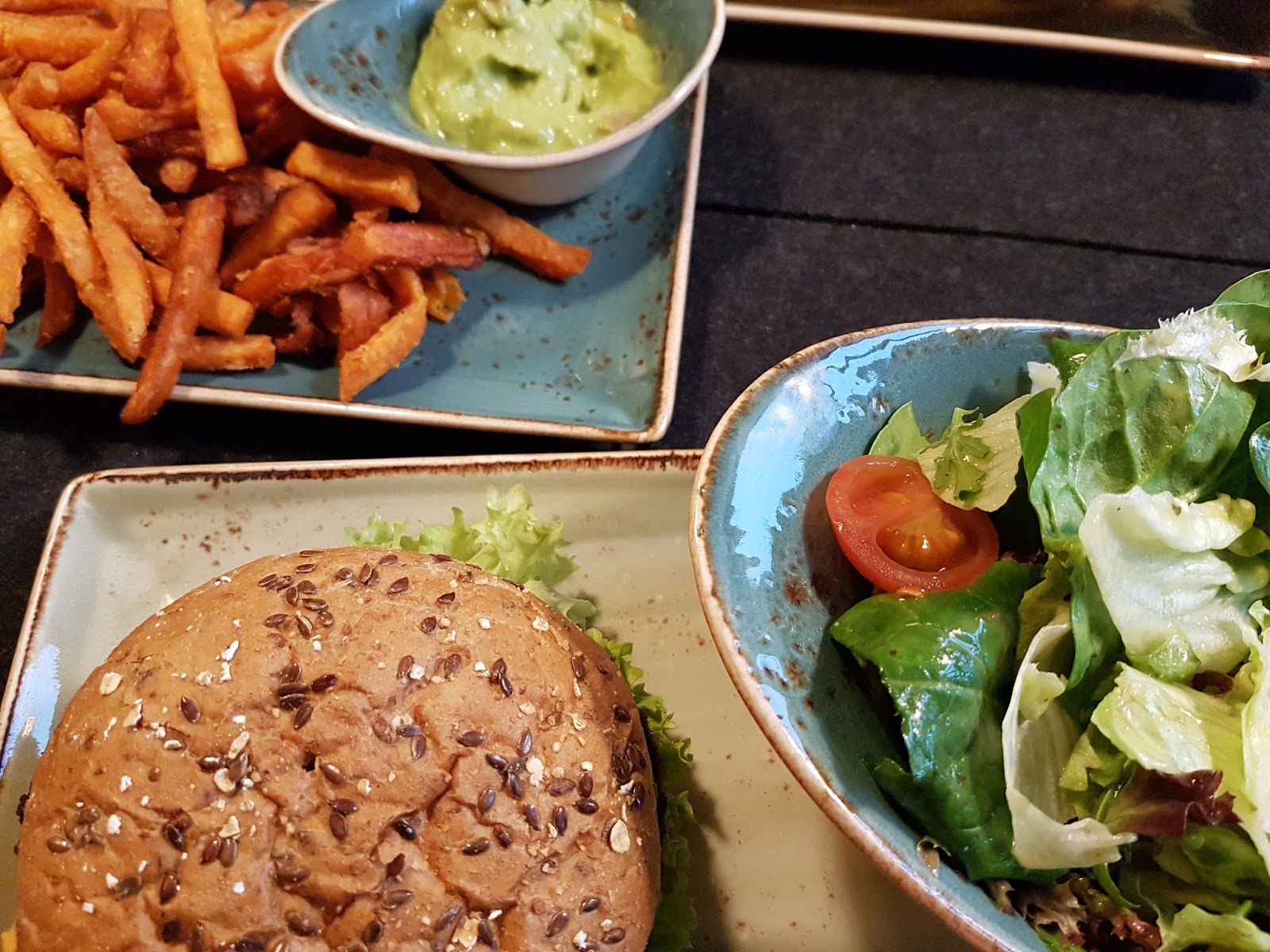 Wir gingen Burger und Fritten/Süßkartoffelfritten essen mit Nachtisch.
