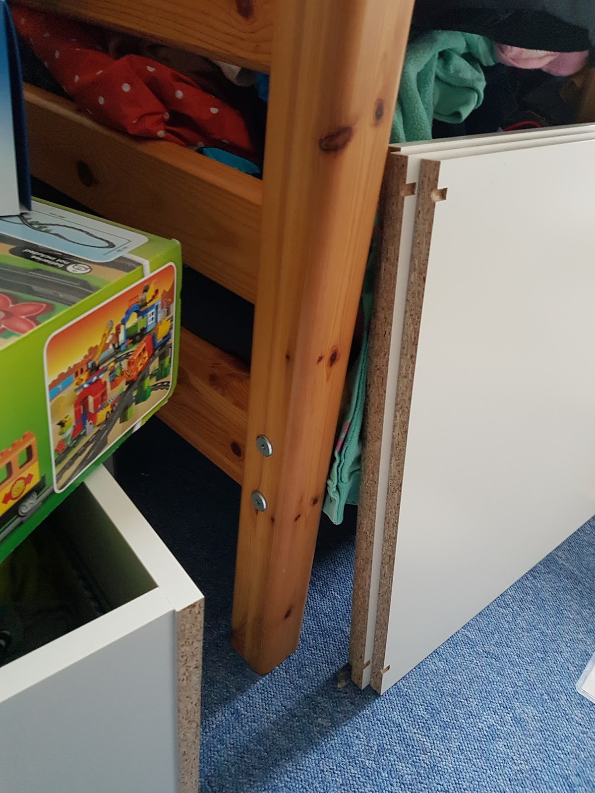 Nach dem ausgiebigen Frühstück machten wir uns an die Arbeit. Das Babybett des Sohnemanns wurde ausgeräumt, gesäubert und weicht Neuem. Wir räumten aus, um, sortierten und putzten. Das große Bett von Kleinanzeigen hatten Oma&Opa am Vortag aufgebaut, während sie auf die Matratze warteten. Die Überraschung am Nachmittag war groß. Und nun wurde also der Rest gestaltet.