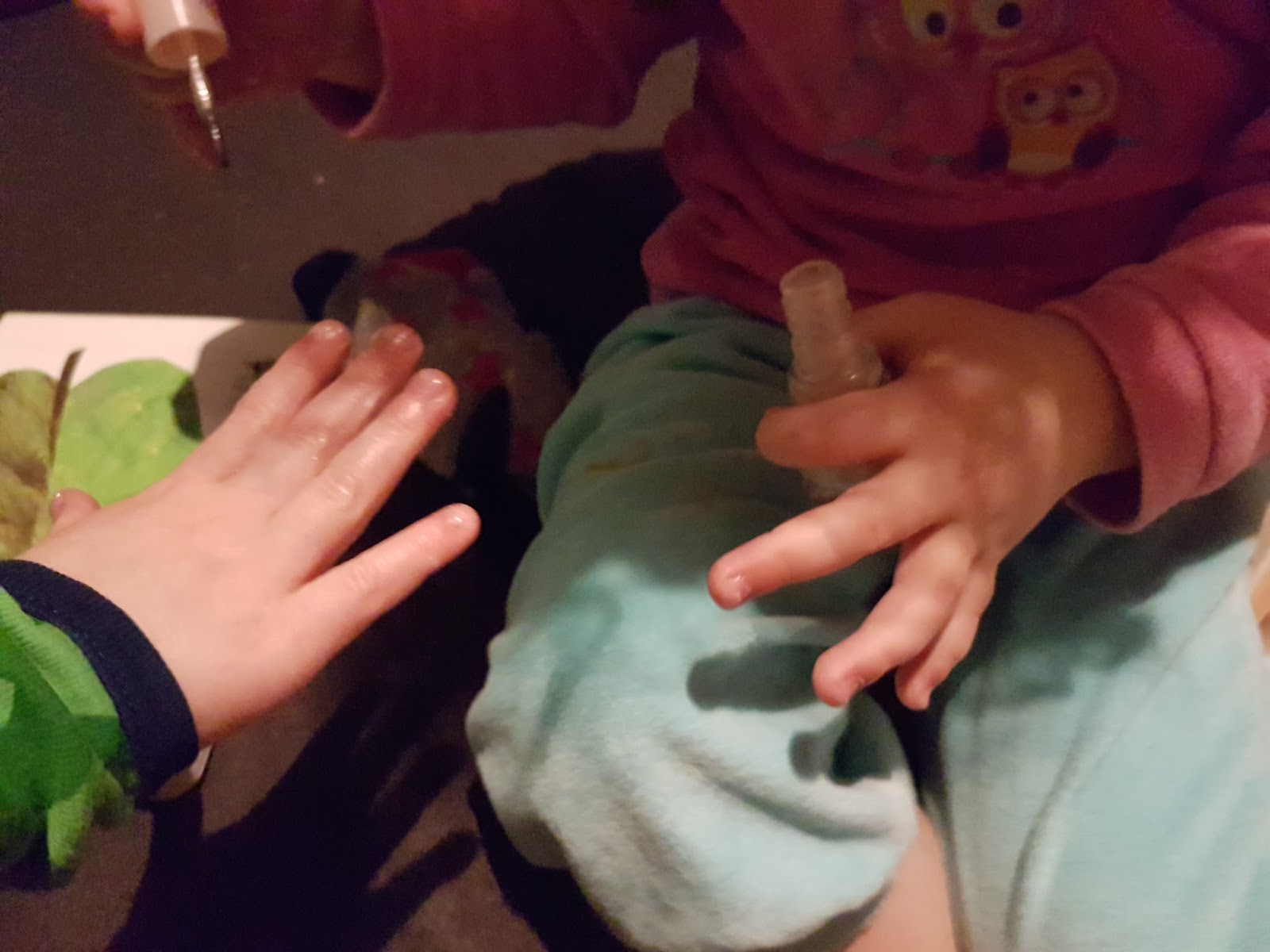 Einen Abstecher auf dem Spielplatz später rief dann die Badewanne. Krümelie wünschte sich Nagellack und großzügiger Weise durfte Krümel auch seine Hände hinhalten.