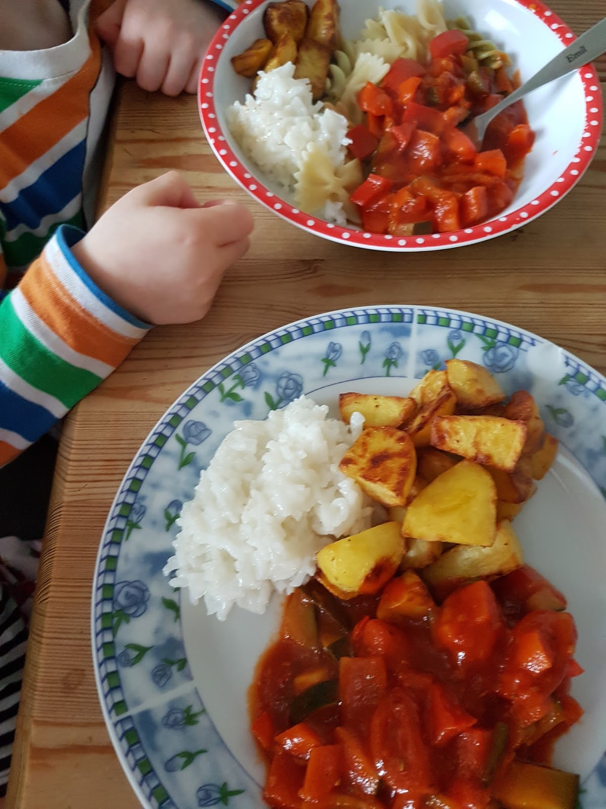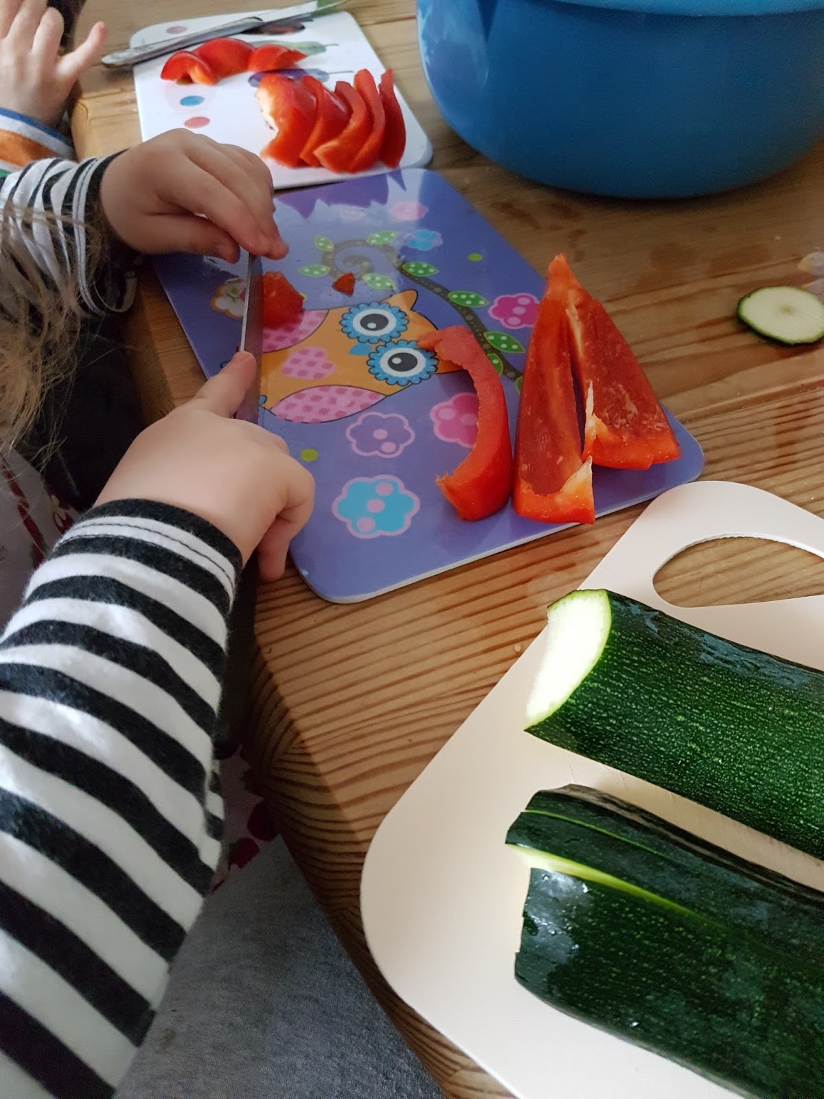 Was hungrig machte. Gemeinsam schnippelten wir Gemüse.