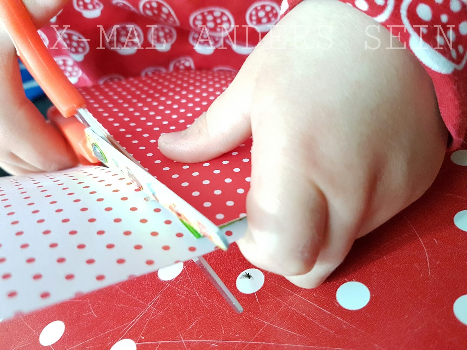 Anschließend schnitt Krümelie eine Ummantelung zurecht, die der Zierde dienen soll und das ganze einfasst. Wir haben das Papier geknickt und wieder ordentlich Kleber genutzt und die Fächer in den Knick gedrückt und dann die Seiten fixiert.