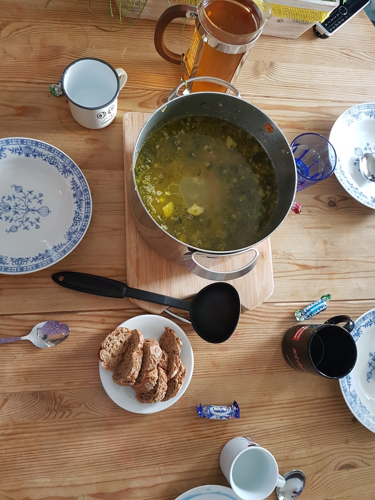 Leider kommen wir in den Regen. Zuhause müssen wir uns erstmal aufwärmen.