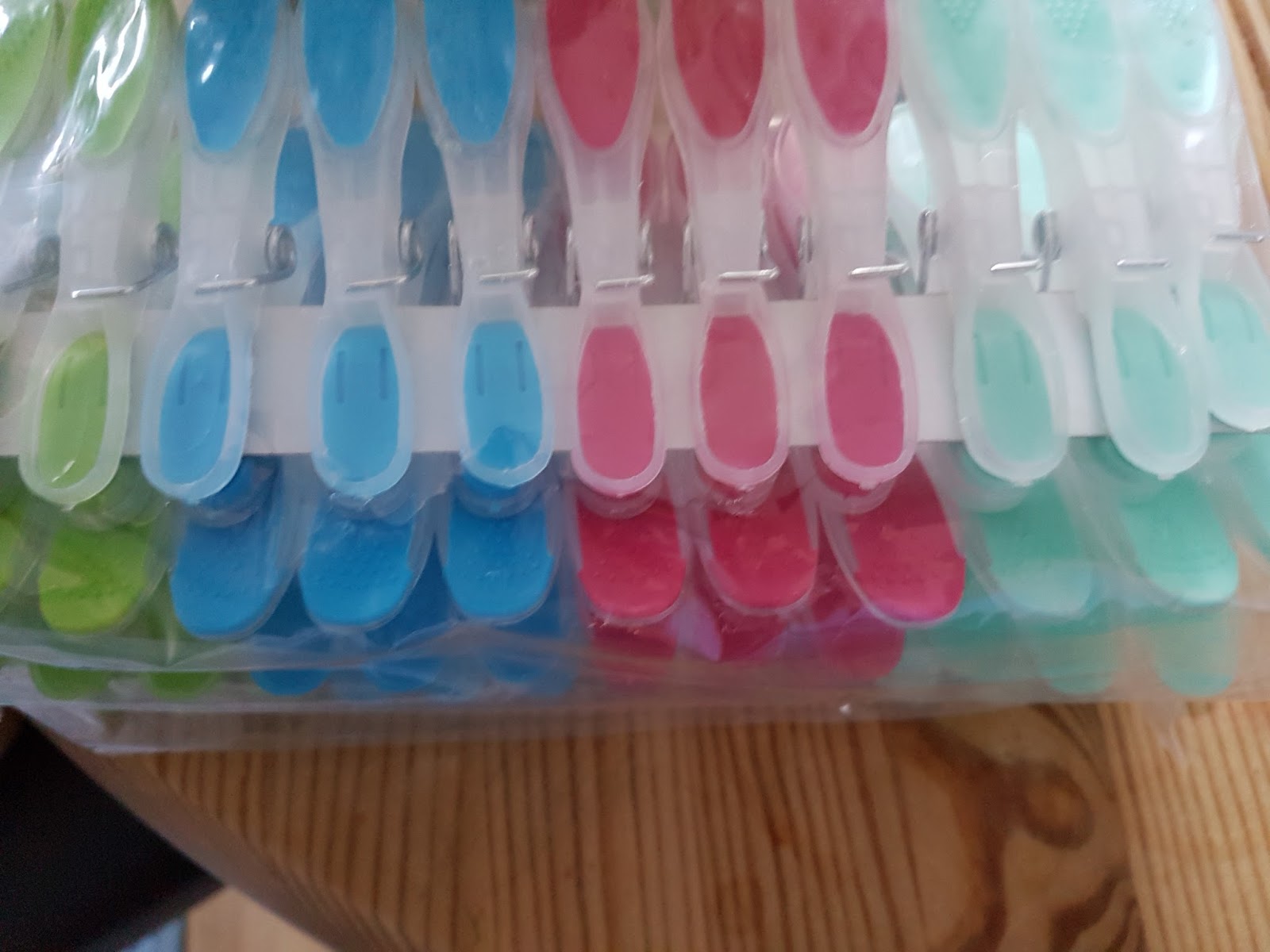 Während die Kinder und ich dann in Pfützen hüpften, ging der Herzmann einkaufen. Ich schmunzelte. Er brachte neues Spielzeug für Krümel. Der Sohnemann liebt Wäscheklammern. Unglücklicher Weise brauchen wir sie ja für die Wäsche. Aber nun…