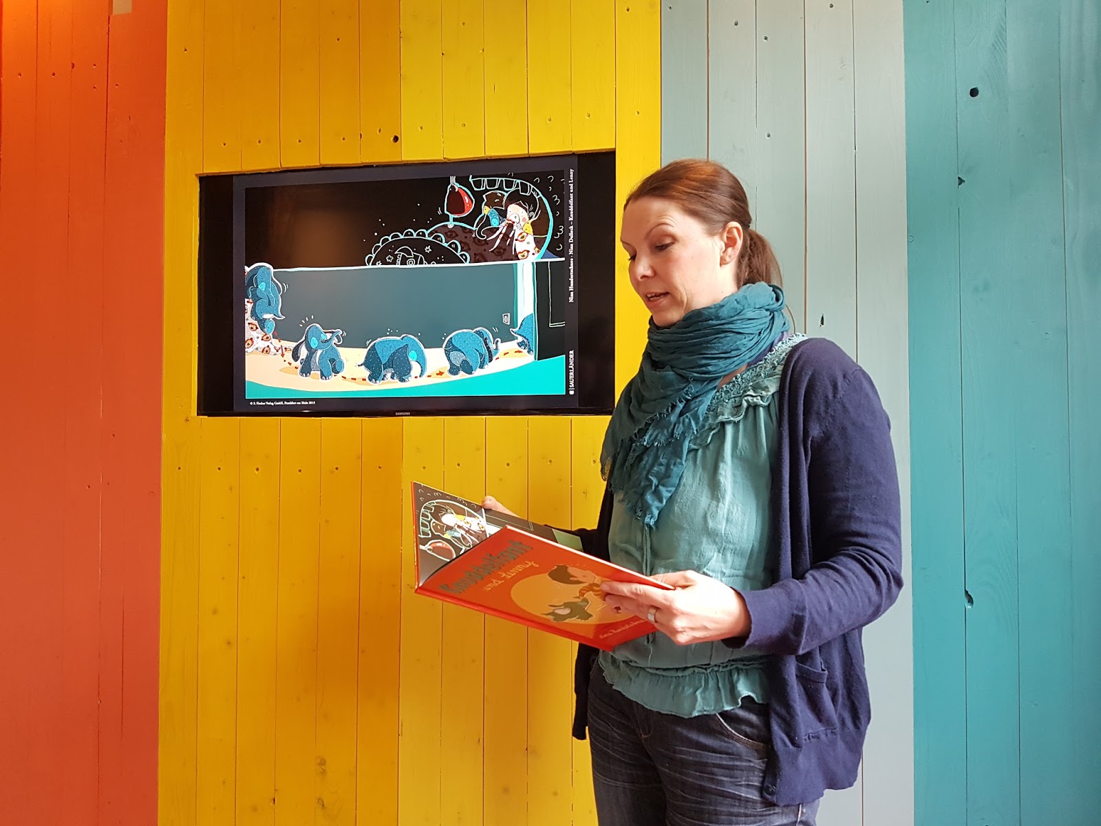 Auch der zweiten Geschichte von Knuddelfant und Lenny lauschten wir aufmerksam. Die Idee des Bilderbuchkinos finde ich klasse.