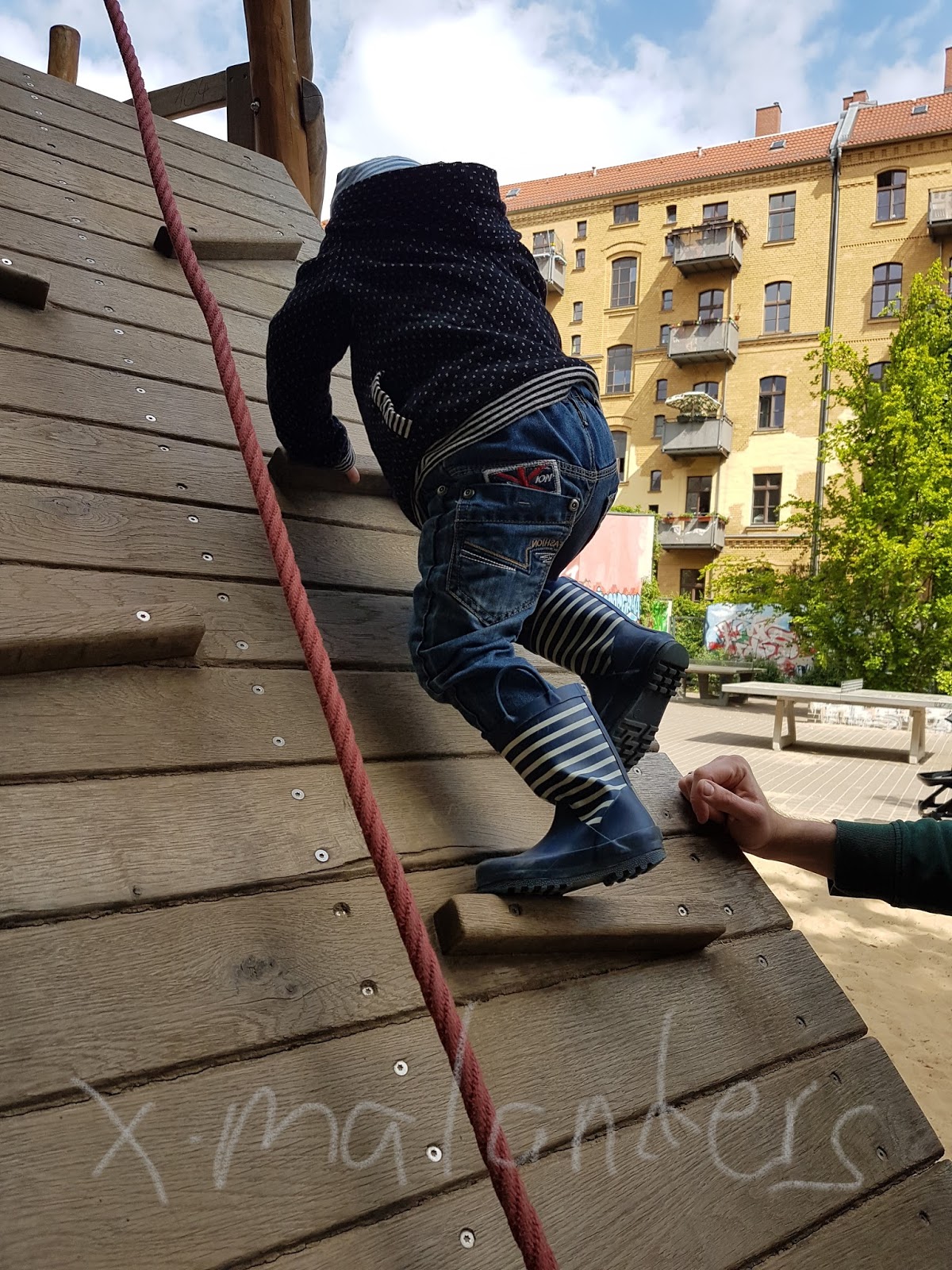 Anschließend tümmelten wir uns auf dem daneben gelegenden Spielplatz. Ganz stolz baggerte das Tochterkind bevor sie zu Rapunzel wurde und ihr Bruder ihr nacheiferte.