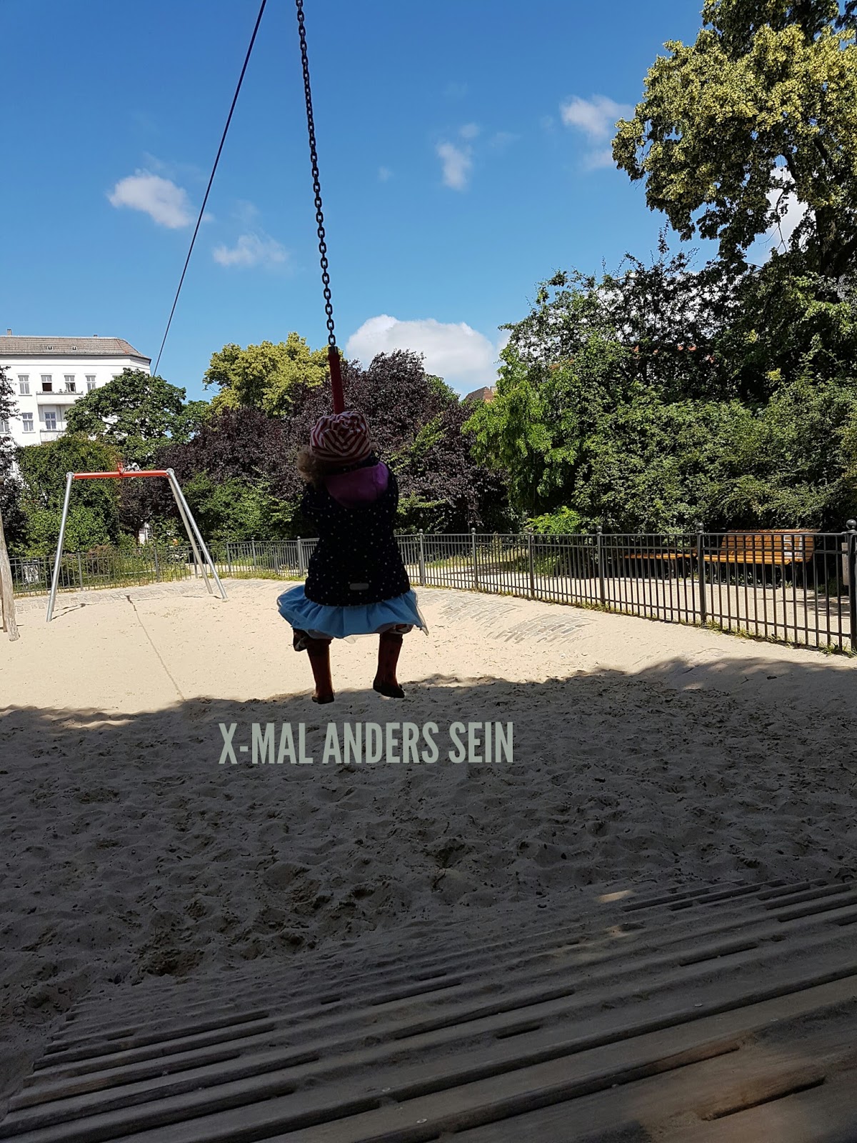 Ich traff meine Lieben auf dem Spielplatz wieder. Krümelie und ich nutzten die Seilbahn gemeinsam und dann sauste das Tochterkind allein.