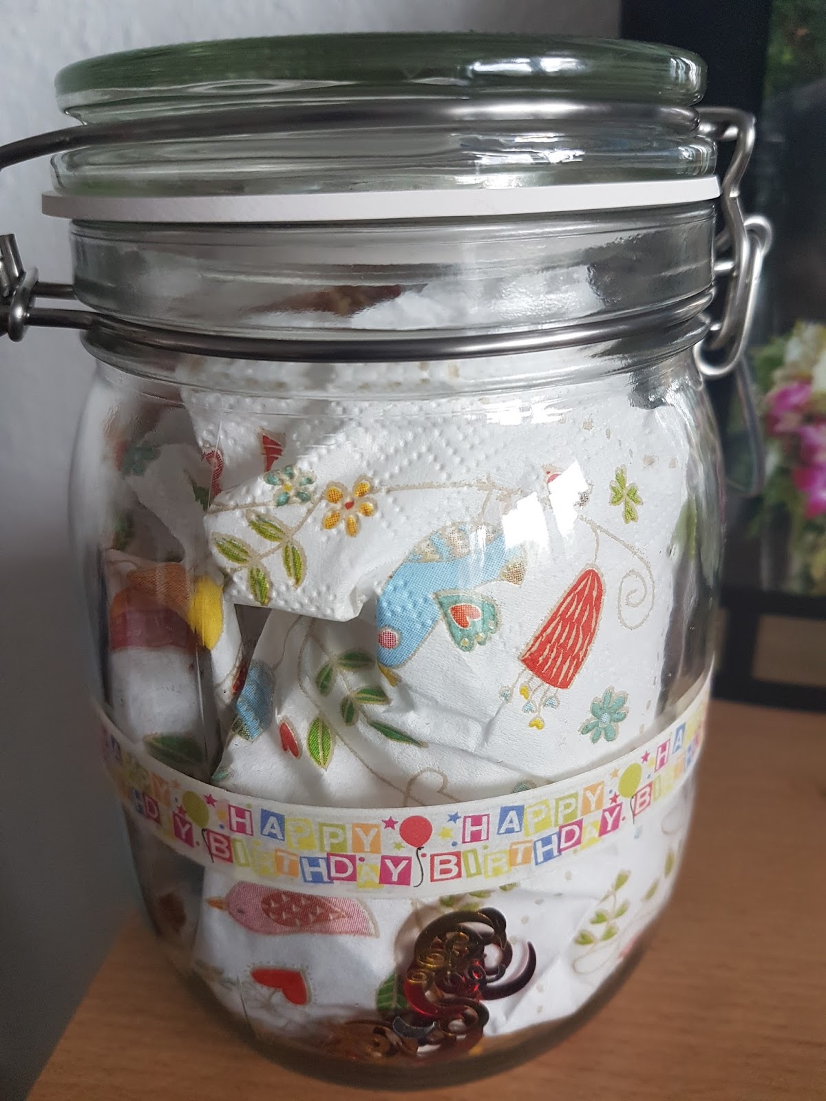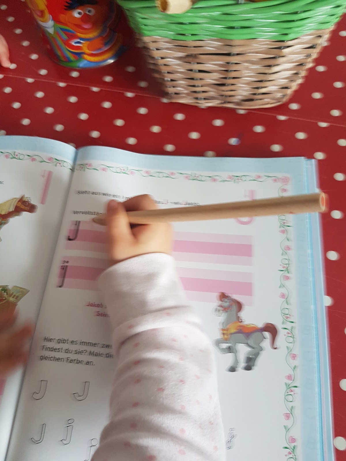 Am Samstagvormittag waren wir fleißig. Krümelie übt sich in ihrem Schreiben. Wir hauselften und vollendeten das Geburtstagsglas.